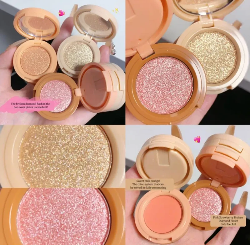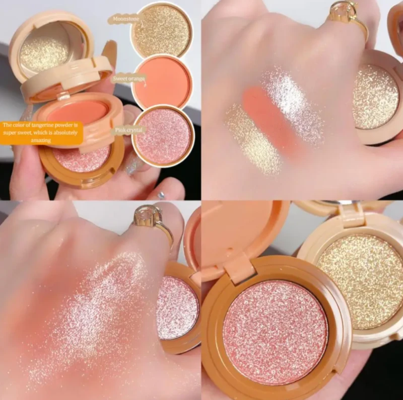 3 In 1 Highlighter Eyeshadow Palette Matte Glitter Shiny Blush Eyeshadow Powder Multi-function Brighten Face Eye Makeup Cosmetic