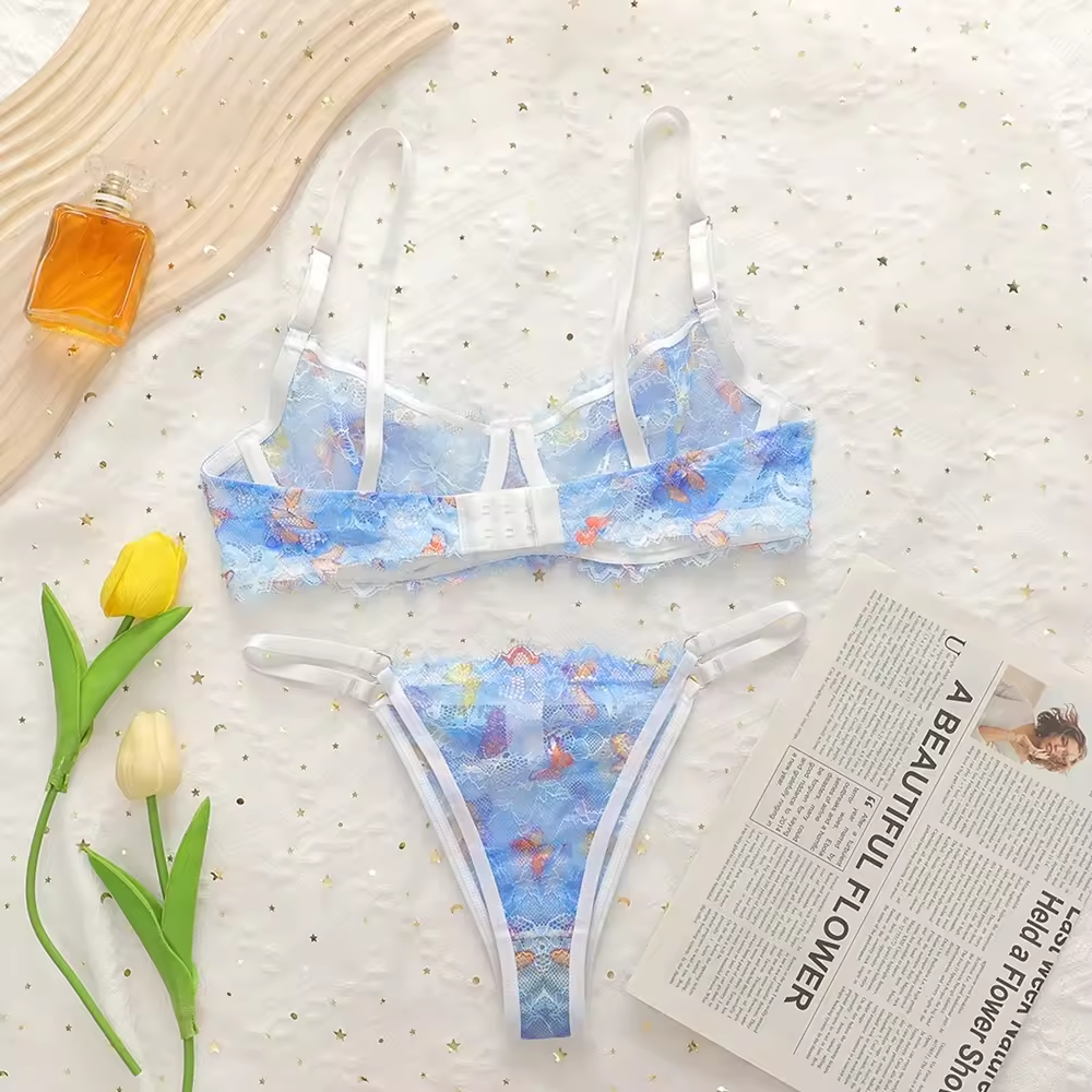 Style Transparent Wholesale Floral Women's Lace Underwear Panties And Bra Set, a mesmerizing ensemble crafted to enhance your
