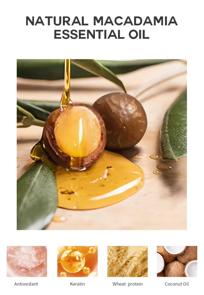 Keratin, Glycerin,Macadamia Ternifolia Seed Oil.