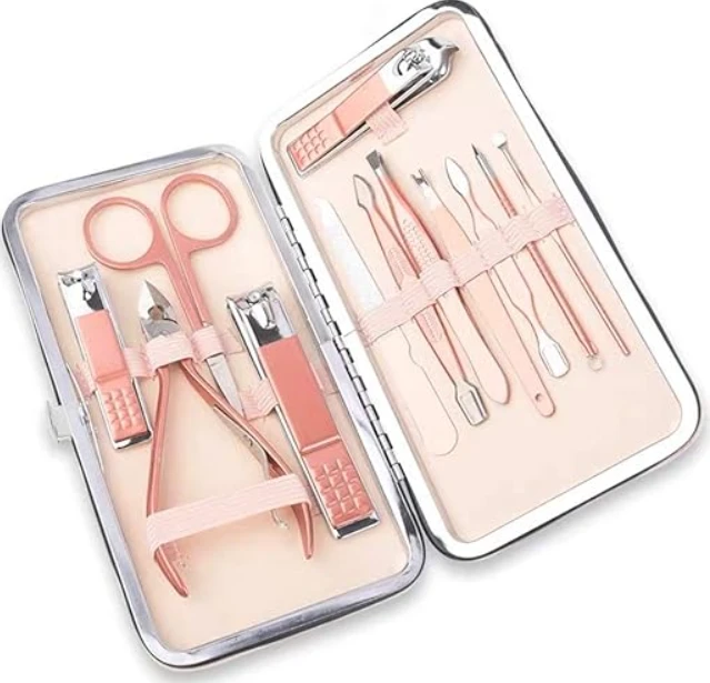 Set of Nail Clippers Kit Nail Grooming Kit Manicure Set for Women and Girl Nail Care (12 PCS, pink)