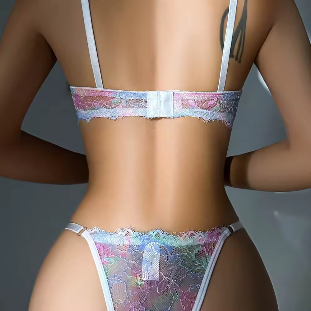 Transparent Sexy Rainbow Color Women's Underwire Bra and Thong Set, designed to