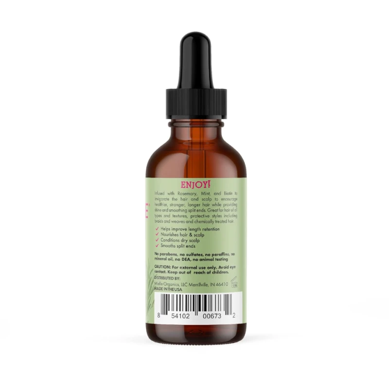 This Rosemary Mint scalp and hair oil is a nutrient-rich, intensive formula meant to help you address your hair concerns. From nourishing hair follicles, smoothing split ends and help with dry scalp, this hair oil uses natural, organic ingredients and essential oils to provide the care your hair deserves. Use it on protective styles, including braids and weaves, and enjoy its fresh, invigorating scent during your next hot oil treatment