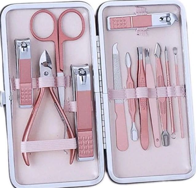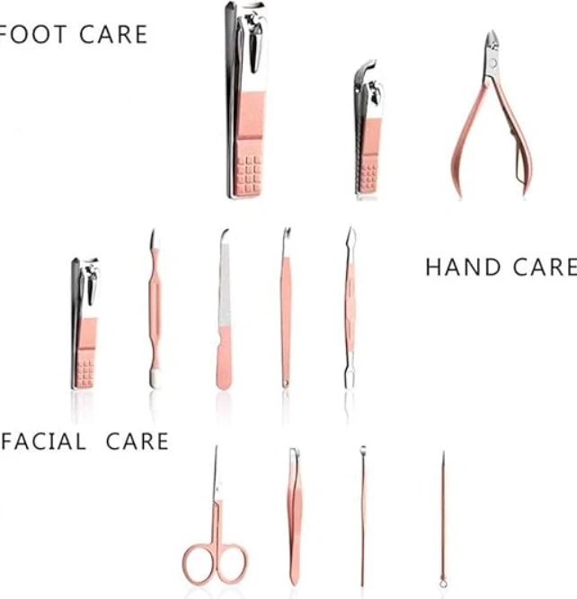 Set of Nail Clippers Kit Nail Grooming Kit Manicure Set for Women and Girl Nail Care (12 PCS, pink)
