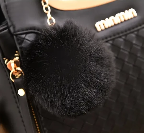 Plush Ball Decor: As an added touch of whimsy, this tote bag features plush ball decorations for a playful twist. These charming accents add a fun and fashionable element to the bag, making it perfect for adding personality to your ensemble.